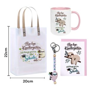 Einschulung Geldgeschenk Faultier – Geschenktüte & Karte A6 – Schlüsselanhänger mit Wunschnamen – Schulanfang Geschenk Kind