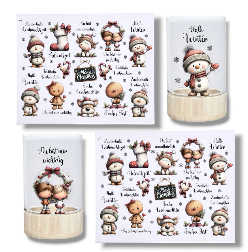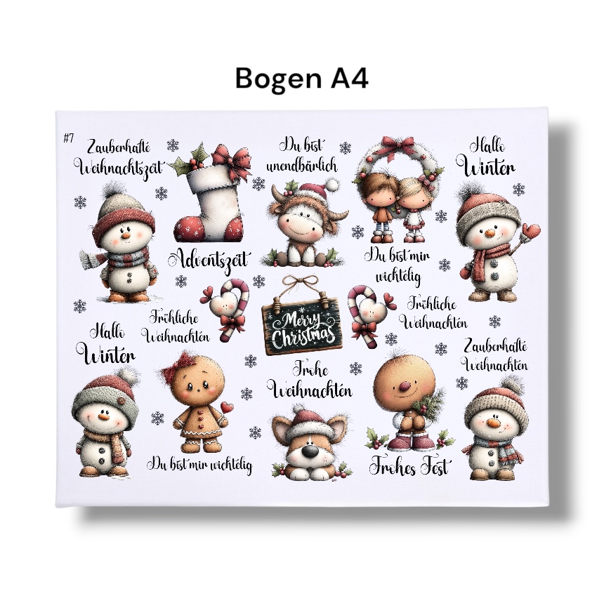 Rub-Ons-Sticker, #7 Weihnachten cute, DIN A4, Wichtel, Schneemann, randlose Rubons Sticker