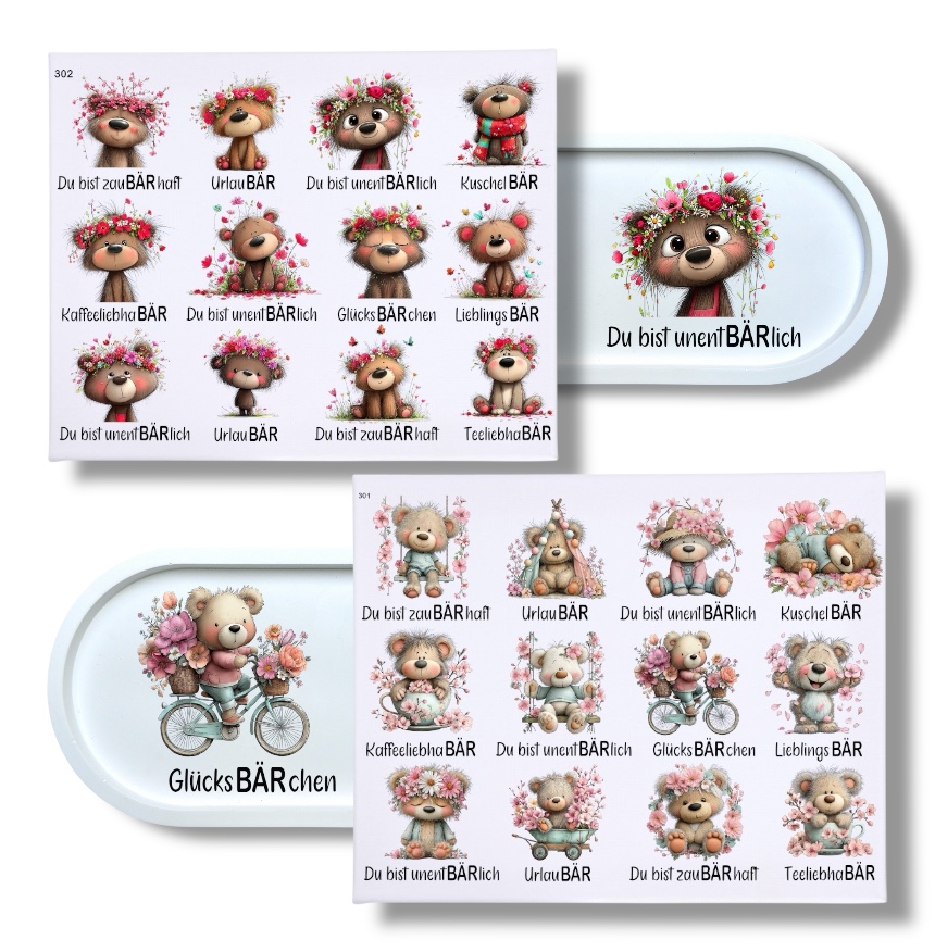 Rub Ons Sticker, BÄRchen, Sprüche, DIN A4, randlose Rubon