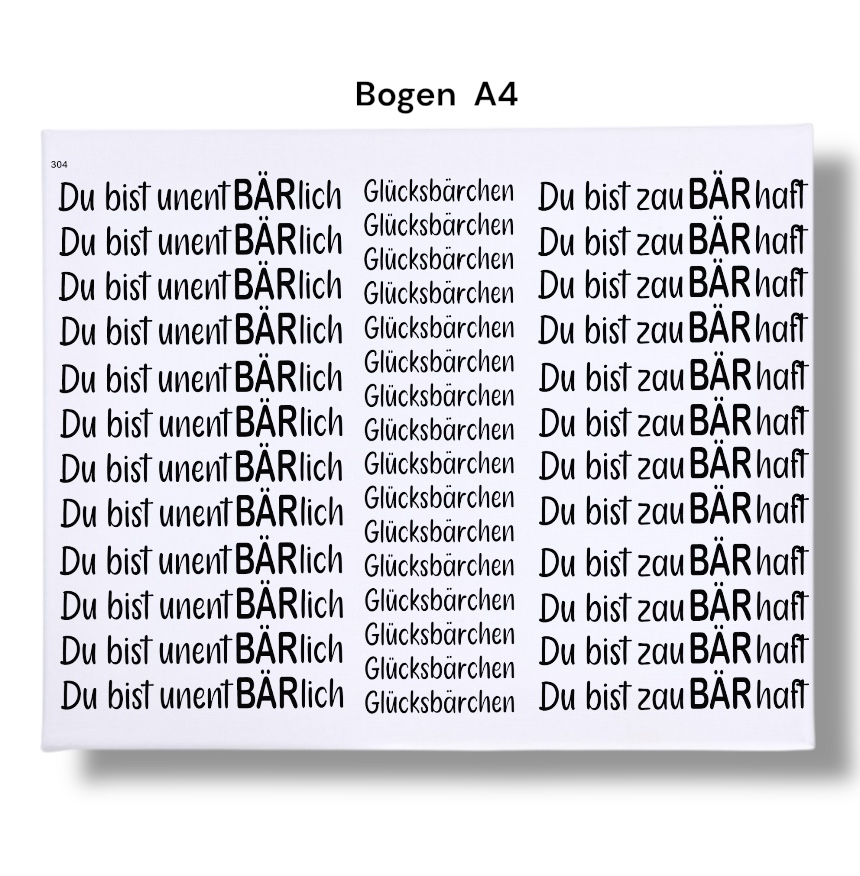 Rub Ons Sticker, BÄRchen, Sprüche, DIN A4, randlose Rubon