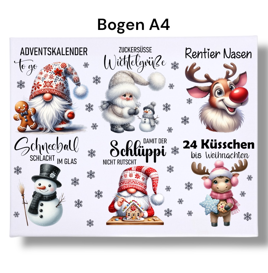 Rub-Ons-Sticker, BEST OF, Gläser, 24 Küsschen bis Weihnachten, Adventskalender to go, DIN A4,Wichtel