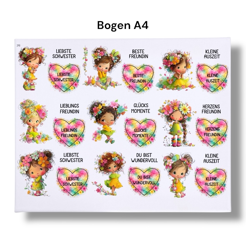Rub Ons Sticker, Mädchen, Freundin, Sprüche, DIN A4, randlose Rubon
