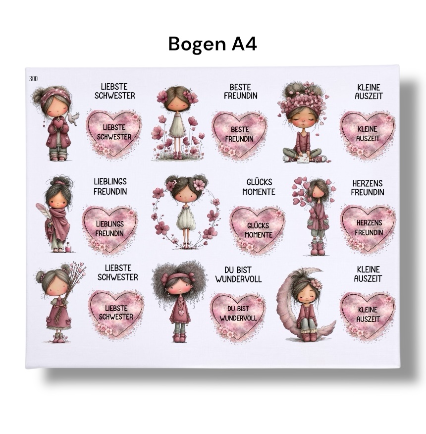 Rub Ons Sticker, Mädchen, Freundin, Sprüche, DIN A4, randlose Rubon