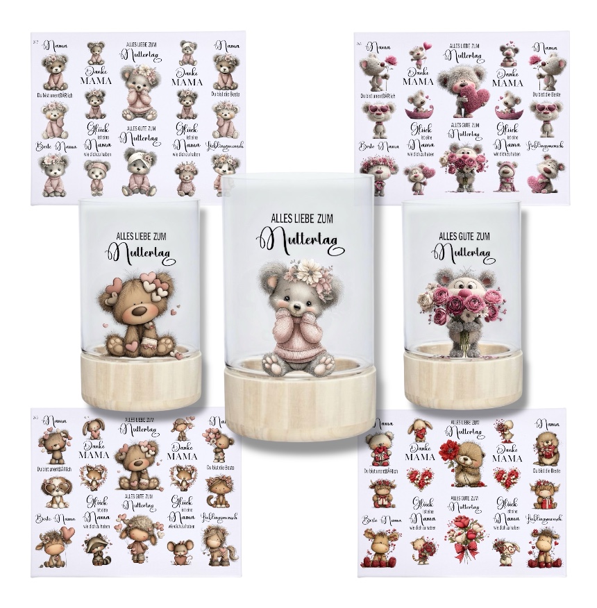 Rub-Ons-Sticker, Muttertag, Sprüche, Teddy, DIN A4, randlose Rubon