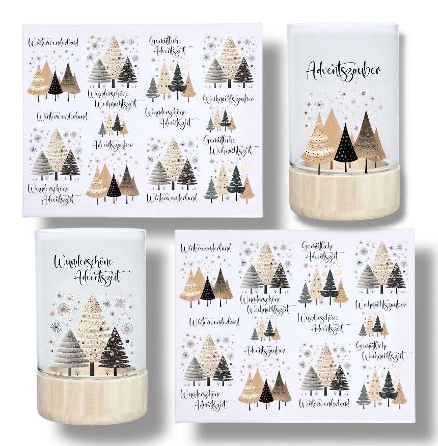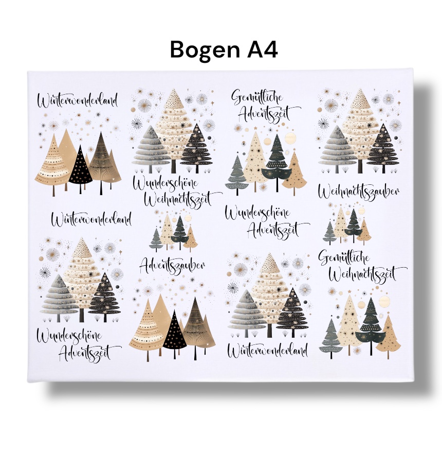 Rub-Ons-Sticker, Tännenbäume schwarz-beige, DIN A4, Sprüche, Weihnachten, randlose Rubons