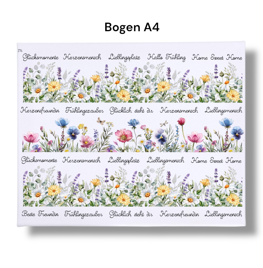 Rub Ons Sticker, Wildblumen, DIN A4, Sprüche, randlose Rubons